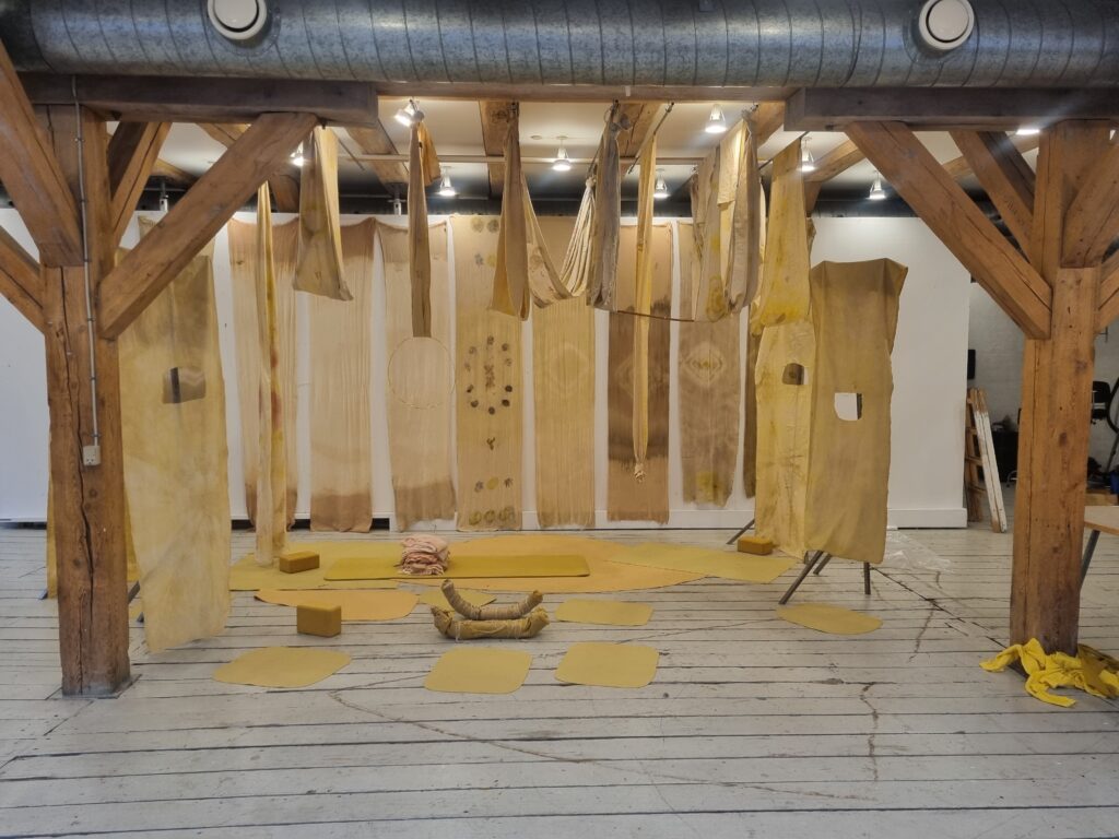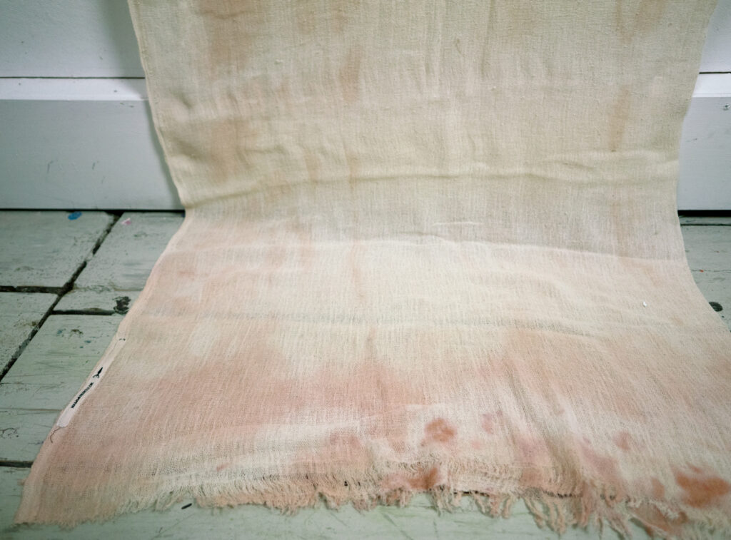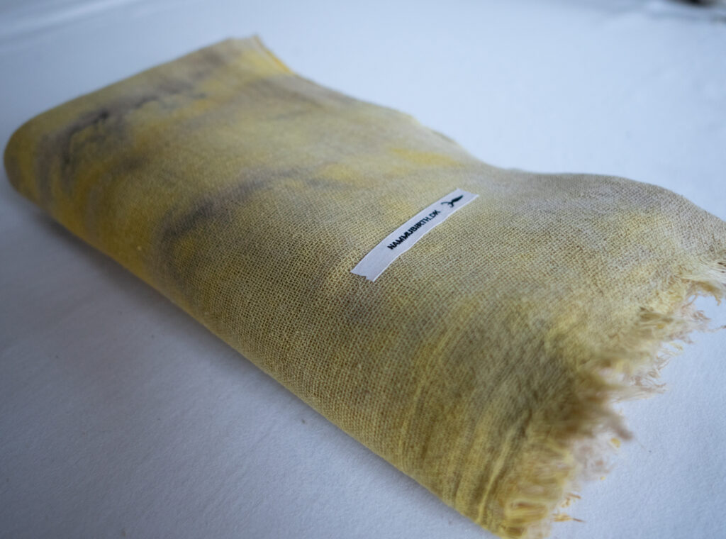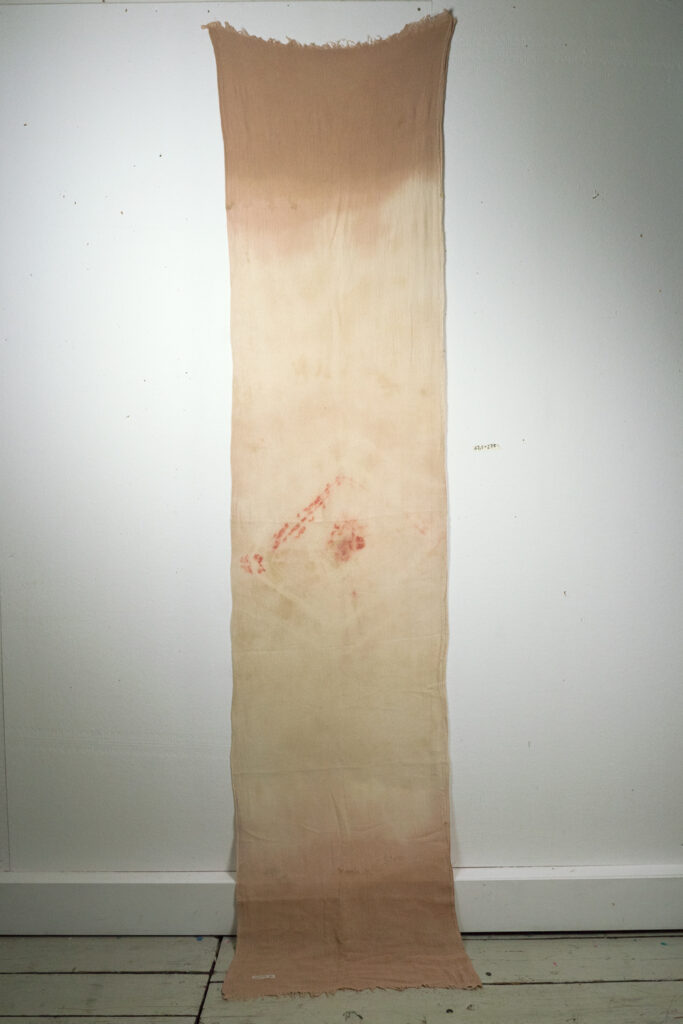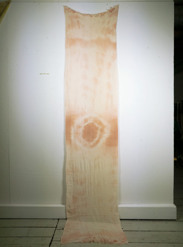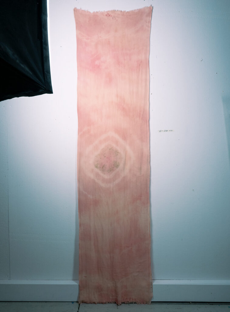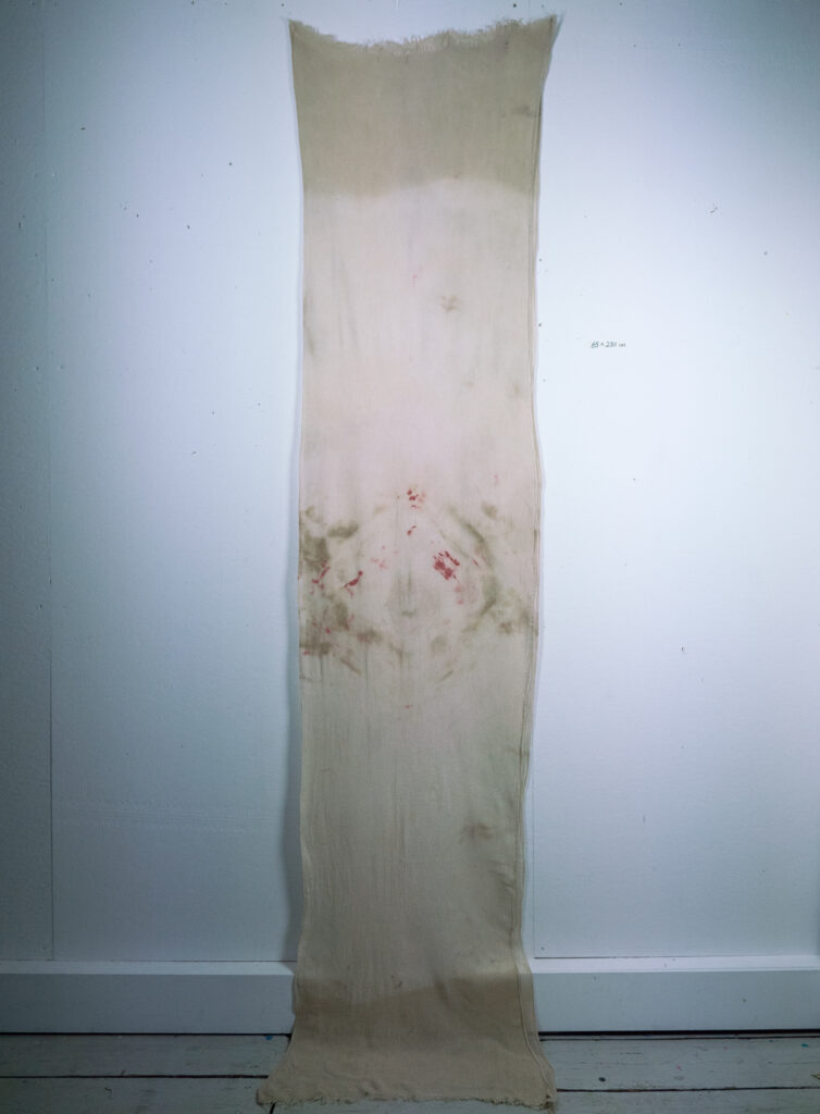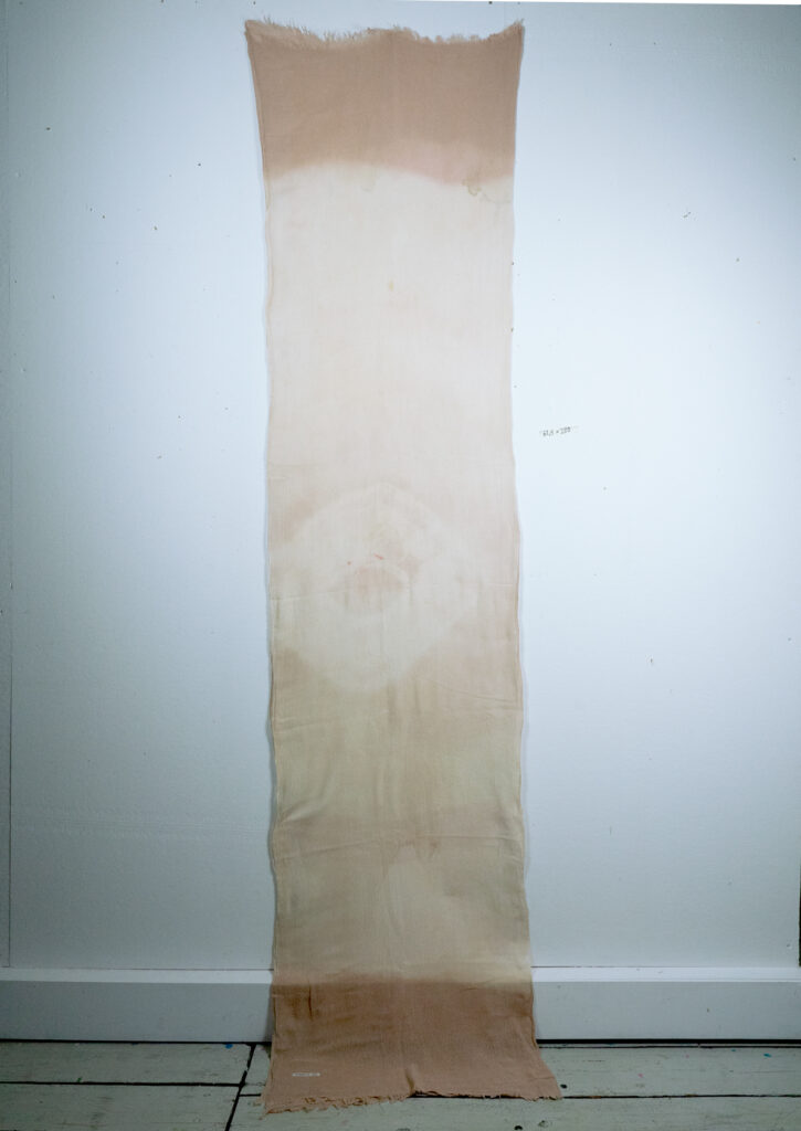 Nammu Birth Rebozo (2024-2025)250-320×40-65 cm cotton. Plant-dyed eco-printed Studio Nanna Lysholt HansenEach Nammu Birth Rebozo is a unique care sculpture and part of an art project by artist and birth worker Nanna Lysholt HansenNammu Birth Rebozo is a multifunctional care and carry tool. Ideal for rebozo massage due to the carefully selected double layer weave which makes it very strong , flexible and lightweight. Nammu Birth Rebozo carefully developed by Nanna Lysholt Hansen with support and guidance by midwife Marta Orbis , who trained rebozo massage with indigenous midwifes in Mexico and brought the rebozo techniques to the birth workers in Denmark 20 years ago.